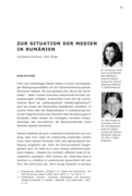 "Von einer konsolidierten Medienlandschaft ist Rumänien noch entfernt. Gewiss, die Pressefreiheit hat sich nach 2004 verbessert und die Verfassung spricht von Gewissens-, Meinungs- und Religionsfreiheit, verbietet Zensur und sichert das Recht auf Information. Doch hört „freie Meinungsäußerung