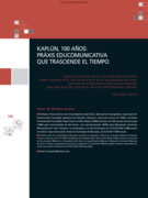 "El presente estudio reúne los elementos esenciales de la ponencia presentada por el autor en la sesión de clausura del seminario celebrativo de los 100 años de nacimiento de Mario Kaplún, realizado de forma virtual, a partir de una articulación de instituciones académicas, investigativas y as
