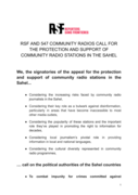 "We, the signatories of the appeal for the protection and support of community radio stations in the Sahel [...] call on the political authorities of the Sahel countries to combat impunity for crimes committed against community radio journalists by systematically opening investigations to ensure tha