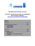 "This document provides the United Nations Implementation Strategy 2013-2014 of the UN Plan of Action on The Safety of Journalists and the Issue of Impunity (hereafter referred to as the UN Plan). In addition to the Strategy, there is a detailed Work-Plan to put the Strategy into place." (Introducti