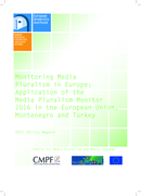 Monitoring Media Pluralism in Europe: Application of the Media Pluralism Monitor 2016 in the European Union, Montenegro and Turkey
