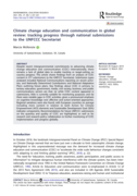 "Despite recent intergovernmental commitments to advancing climate change education and communication (CCEC) internationally, there remains a lack of global data to enable tracking or target-setting on country progress. This article shares findings from an analysis of CCEC content in 377 submissions
