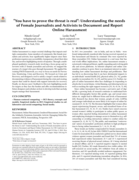"Reports of the online harassment of journalists have continued to increase as more newsrooms place higher emphasis on social media engagement with audiences. However, this harassment is subject to gendered dynamics, as women journalists are most often the target of online abuse, and the attacks the