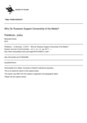 "This article analyses support for censorship in Russia as part of the democratization process. Censorship has been an important part of Russian history and it was strengthened during the Soviet era. After the collapse of the Soviet system formal censorship was banned even though the reality has bee