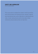 "This course aims to analyse the context in which journalists and communicators are working at local, national, regional and international level, and to help them to identify potential risks, to learn safe protocols and to know about those institutions and procedures that can help them." (Abstract)
