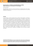 "El artículo presenta un conjunto de reflexiones sobre la actuación de radios educativas y comunitarias en contextos de conflicto social principalmente entre empresas mineras y comunidades en el Perú. Parte de una aproximación a la problemática de los conflictos sociambientales, cuyo número e