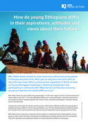 "BBC Media Action surveyed 2000 young people (aged 15–29) in four regions and the city administration of Addis Ababa in May 2021. The study highlighted differences in young Ethiopians’ attitudes towards work and saving, education, traditional gender and cultural norms, and youth participation in