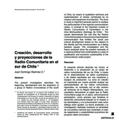 "El presente artículo describe los inicios, el desarrollo y la proyección de un grupo de radios comunitarias del sur de Chile, a través de la sistematización de datos cuantitativos y de relatos aportados por sus creadores y equipos de producción. La zona en estudio es importante por cuanto perm