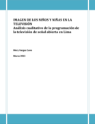 Imagen de los niños y niñas en la televisión: Análisis cualitativo de la programación de la televisión de señal abierta en Lima