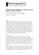 "Anthropological research methods are characteristic of much of the investigation of remote Indigenous media production in Australia and have enabled the voices of some Indigenous audiences to be heard. However, these approaches generally have been concerned with the social organisation of productio