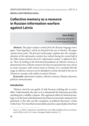Collective Memory as a Resource in Russian Information Warfare Against Latvia