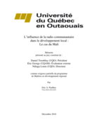 L’influence de la radio communautaire dans le développement local : Le cas du Mali