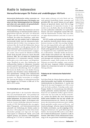 "Indonesische Radiomacher stehen momentan vor zwei großen Herausforderungen: Sie kämpfen zum einen mit dem Bedeutungsverlust des Hörfunks und sehen sich zum anderen mit pressefreiheitlichen Einschränkungen konfrontiert." (Abstract)