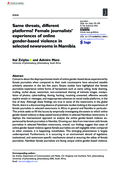 rassment such as name calling, body shaming, trolling, verbal abuse, sextortion, non-consensual sharing of intimate images, manipulation of photos, cyberstalking, doxing, hacking, receiving unwanted, offensive sexually explicit emails or messages, and inappropriate advances on social media platforms, in the line of duty. Although these findings are true in some of the newsrooms in the global North, there is a disconcerting absence of systematic studies looking at the experiences of female journalists in selected newsrooms in Africa in general and Namibia in particular. This article seeks to fill this lacuna by empirically investigating the extent to which online gender-based violence is deep-seated social problem in selected Namibian newsrooms. It deploys the intersectional approach to analyze the online gender-based violence experienced by female journalists in Namibia. Drawing our data from interviews with female journalists in selected Namibian newsrooms, overall, our findings suggest that cases of online gender-based violence against female journalists are still negligible when compared to other contexts, it is happening, nonetheless. This emerging phenomenon is largely underreported. Furthermore, it is occurring in an environment devoid of legislative, institutional, and newsroom-specific mechanisms aimed at ensuring the safety of female journalists. Namibian female journalists are facing unique online gender-based violence, which contributes immensely towards self-censorship and retreating from the public sphere." (Abstract)