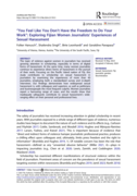 in journalism. Empirically, it draws on a nationwide survey of journalists combined with data from semi-structured interviews conducted with 25 women journalists to explore the gendered experiences of online abuse. Journalists feel an increasing hostility aggravated by the digital environment. Half of the surveyed professionals experienced online abuse, including sexual harassment. Journalists evidenced low trust in protection mechanisms and feelings of resignation towards online abuse, seen as intrinsic to the job. The interviews further revealed a perceived connection between gender and online abuse: women recognized the sexualized nature of online abuse, which they linked to the broader cultural context of gender inequality." (Abstract)