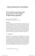 press as related to the concept of human rights and fundamental freedoms. Put differently, a free and independent press is not only a mirror of good governance, but also one of the essential elements of democratic governance. This article represents a modest contribution to the existing literature on the questions of governance, democracy, press freedom and human rights, with particular reference to The Gambia." (Abstract)