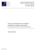 "This report is focused on attitudes to trust in international media. It collates findings from 36 focus groups and 11 immersion interviews conducted in Nairobi (Kenya), Cairo (Egypt), Dakar (Senegal), Mumbai (India) and Lahore (Pakistan) in the summer and autumn of 2010 [...] The report explores th
