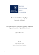 "In this study I set out to investigate whether non-profit journalism models, particularly URN, provide an effective bulwark against the challenges associated with market-driven journalism in Uganda's hostile socio-economic and political landscape. The study further sought to establish whether URN c
