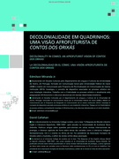 "El afrofuturismo se propone como clave de lectura para señalar Contos dos Orixás, de Hugo Canuto como expresión decolonial. La publicación asimila un elemento cultural – el estilo del dibujante de cómics Jack Kirby – para dibujar la mitología de los orixás en una perspectiva brasileña d