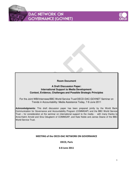 A Draft Discussion Paper: International Support to Media Development. Context, Evidence, Challenges and Possible Strategic Principles