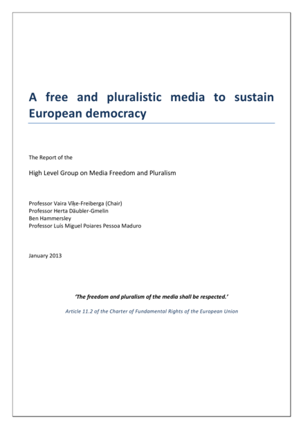 High Level Group on Media Freedom and Pluralism (2013), 51 pp.