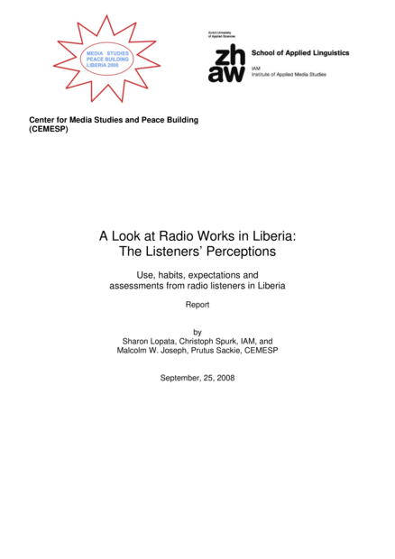 "This research project in Liberia has tried to do first steps to understand in detail the quality of media, especially radio, in Liberia and what the audience is thinking of and expecting from the media. Being the first of its kind in Liberia after the end of the civil war it has investigated a) the quality of media output by means of content analysis and b) audiences perceptions of the media quality extracted from focus group discussions." (Page 4)