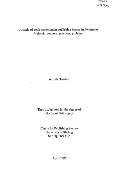 A Study of Book Marketing in Publishing Houses in Peninsular Malaysia: Contexts, Practices, Problems