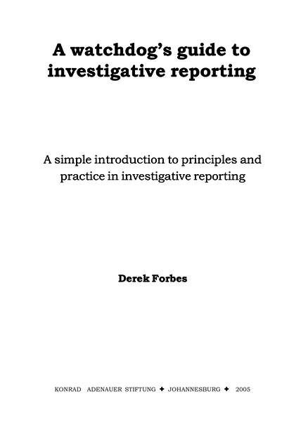 A Watchdog’s Guide to Investigative Reporting: A Simple Introduction to Principles and Practice in Investigative Reporting
