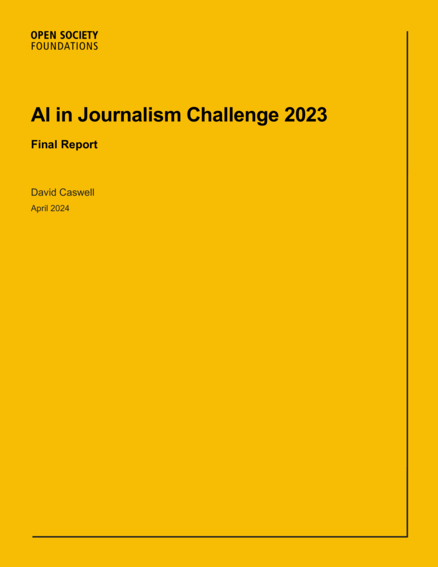 "This report describes the Applied AI in Journalism Challenge (AIJC)—a competitive accelerator program intended to prototype pragmatic applications of artificial intelligence (AI) capabilities in mission-driven newsrooms around the world. The program was launched in June 2023 and ran until November 2023. Funding was provided by the Open Society Foundations. The author of this report was the lead consultant for the project. The AIJC program was the first of its kind and therefore was itself a prototype—both of a process for accelerating the pragmatic adoption of AI within newsrooms, and also of an approach to developing investment opportunities around applying AI to news. The program was largely successful, developing a cohort of capable and motivated teams and actively engaging with them as they developed substantial new capabilities. The program also succeeded in producing a range of practical insights for its different stakeholder groups—newsrooms, program operators, investors, and the news industry generally.