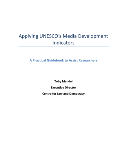 Applying UNESCO’s Media Development Indicators: A Practical Guidebook to Assist Researchers