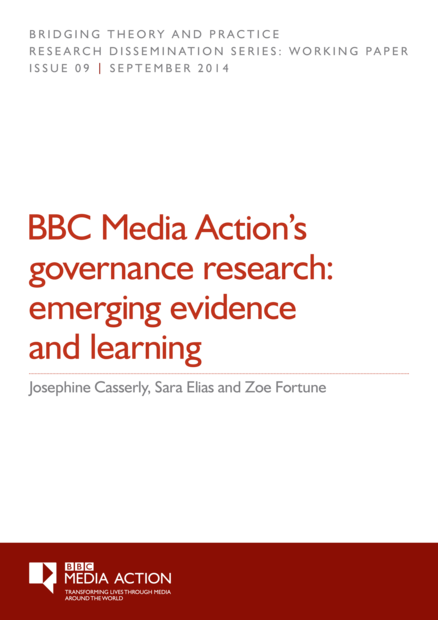 "The paper synthesises findings from quantitative and qualitative data from across African, Asian and Middle Eastern countries. The second section draws on baseline data from Bangladesh, Burma, Kenya, Nepal, Nigeria, Palestinian Territories and Sierra Leone to explore the media and governance contexts in the countries where we work. The third part then summarises what we are learning about who is being reached by BBC Media Action interventions. The fourth section, firstly, reports regression analysis conducted on baseline data from Sierra Leone and midline data from Kenya to build up evidence on the impact of debate and discussion programmes on audiences’ political knowledge and participation. Then findings are presented from a qualitative study assessing how Nigerian drama Story Story is promoting dialogue as a means of reducing conflict. Comparing findings across countries is helping us to learn more about the governance and media contexts in which we work and inform programming. A first glance at key governance outcomes across countries attests to the centrality of country context in shaping how political knowledge, discursive participation, political participation and interest in politics relate to each other. Disaggregating these outcomes by demographic variables underlines the importance of gender in structuring them, with women reporting lower levels of political knowledge and interest in politics, and discussing and participating in politics less than men. However, disaggregating political participation by income reveals less consistent results: in Nigeria and Bangladesh, those with more resources are more likely to participate, whereas in Kenya and Sierra Leone, those with more resources and less likely to participate." (Executive summary)