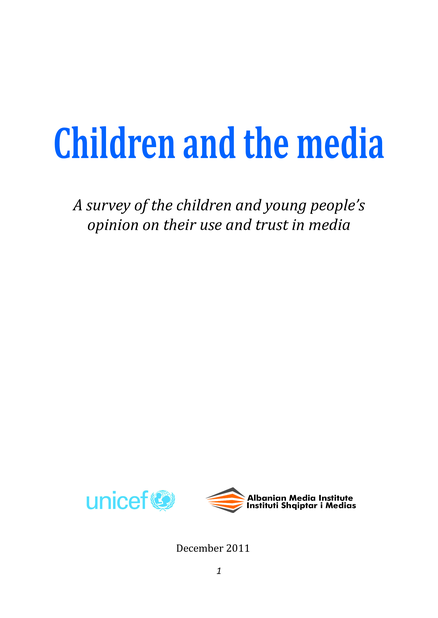 "This material summarizes the main results and trends of a survey carried out with children and young people aged 13-18 in Tirana. The material focuses on the preference of this age group regarding different media, on the trends of opinions, suggestions for improvement, especially regarding the portrayal of this age group, as well as the relationship of trust this group has with each of these media." (Page 2)