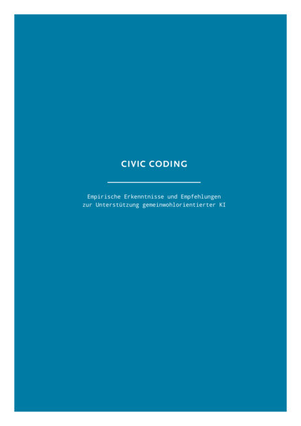 "Der Einsatz von Künstlicher Intelligenz (KI) im Sinne des Gemeinwohls steckt noch in einer Erprobungsphase. Dieses Policy Paper präsentiert empirische Ergebnisse der Civic Coding-Studie, die die empirischen Befunde aus 20 Expert*innen-Interviews und zehn Fallstudien aus unterschiedlichen gemeinwohlorientierten Tech-Projekten vorstellt. Die Studie beschreibt zentrale Potenziale, Erfolgsfaktoren, Risiken, Herausforderungen und die Bedarfe gemeinwohlorientierter Tech-Projekte. Auf Basis der Ergebnisse wurden 16 Empfehlungen entwickelt, die zur nachhaltigen Förderung gemeinwohlorientierter KI beitragen sollen." (Zusammenfassung)