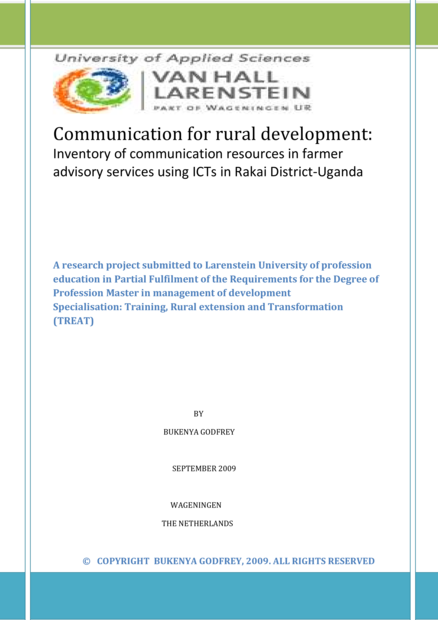 Communication for Rural Development: Inventory of Communication Resources in Farmer Advisory Services Using ICTs in Rakai District-Uganda