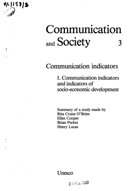 Communication Indicators. I: Communication Indicators and Indicators of Socio-Economic Development