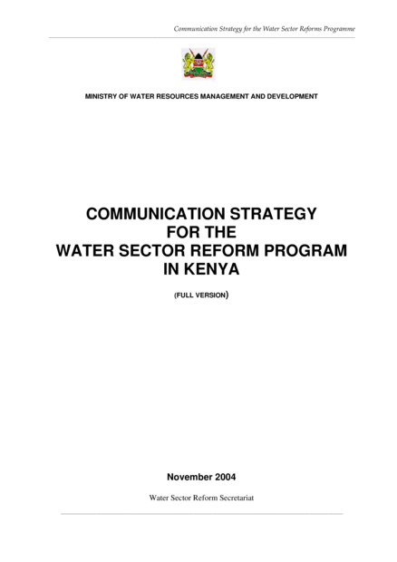 Communication Strategy for the Water Sector Reform Program in Kenya