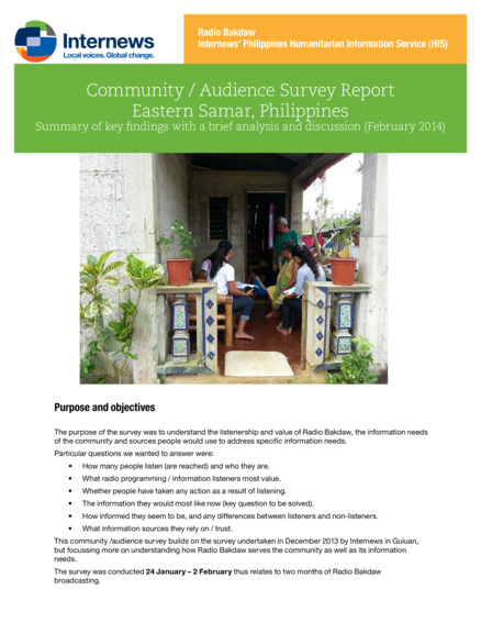 Community / Audience Survey Report Eastern Samar, Philippines: Summary of Key Findings with a Brief Analysis and Discussion