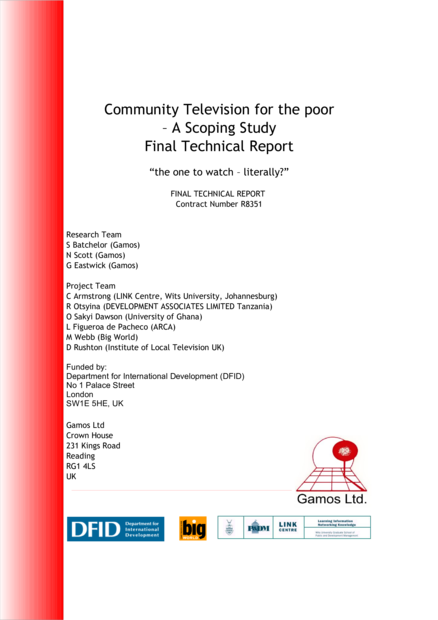 Community Television for the Poor: A Scoping Study. Final Technical Report