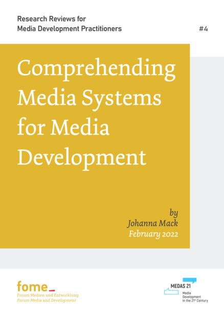 "Media development assistance and media systems research are intricately connected: by describing, assessing, and attempting to change them, media development actors produce knowledge about media systems and directly impact them. This research review explores the intersections of academic media systems research and practices of describing and assessing media landscapes in the media development sector and suggests how both could learn from each other. In what follows, the most important publications on media systems since the Cold War era will be reviewed, tracing the ongoing process of refining concepts and definitions. Alongside a geographical broadening of the research scope, models as well as methodological approaches have been questioned and reinvented. The review places a special focus on the peculiarities of researching media systems in sub-Saharan Africa. Referring to academic as well as grey literature, it suggests points of departure for meaningfully linking academic knowledge and practitioners’ knowledge about media systems, concluding with recommendations for informed practice." (Abstract)