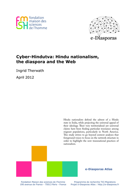"Hindu nationalists defend the advent of a Hindu state in India, while projecting the universal appeal of their ideology. Their very territorialised yet universal claims have been finding particular resonance among migrant populations, particularly in North America. This study strives to go beyond content analyses that foreground voices to focus on the network structure in order to highlight the new transnational practices of nationalism. Two main points emerge from this in-depth scrutiny. On the one hand, Hindu nationalist organisations have transferred their online activities mainly to the USA, where the Indian diaspora is 3.2 million strong and constitute therefore a prime example of long-distance transnationalist nationalism. On the other hand, the morphological discrepancies between the online and the offline networks point to new strategies of discretion developed to evade the gaze of authorities in countries of residence. The recourse to such cartographies thus becomes crucial not only in understanding what sectarian or illegal movements do but also what they seek to hide." (Abstract)
