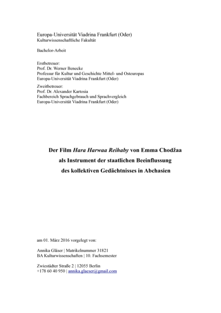 Der Film Hara Harwaa Reihaby von Emma Chodzaa als Instrument der staatlichen Beeinflussung des kollektiven Gedächtnisses in Abchasien