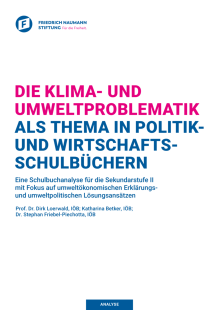 "Der Klimawandel ist eine der größten Herausforderungen unserer Zeit. Schulen tragen eine große Verantwortung, junge Menschen mit dem nötigen Wissen über Ursachen und Lösungsmöglichkeiten auszustatten. Die Studie des Instituts für ökonomische Bildung (IÖB) zeigt allerdings, dass Schülerinnen und Schüler in der Schule nur wenig zu Themen wie dem Emissionshandel, der Ökosteuer oder anderen Markt- und Anreizlösungen erfahren. Auch die Perspektive von Verbrauchern und Unternehmen wird selten berücksichtigt. Nur wenn diese Bildungslücke geschlossen wird, sind junge Menschen in der Lage, politische und ökonomische Lösungsvorschläge adäquat zu bewerten." (https://shop.freiheit.org)
