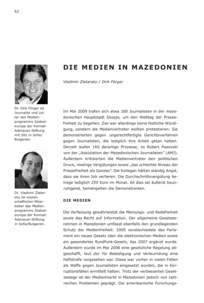 "On World Press Freedom Day, about 200 journalists met in the Macedonian capital of Skopje in May 2009 to protest against unfair trials of journalists and pillory political pressure and the level of press freedom in general. To be sure, Macedonia’s constitution guarantees freedom of opinion and the press. Moreover, laws such as the electronic media act of 2005 and the radio act do allow a certain latitude for journalists. Yet problems remain: many media depend on the state, wages are low, journalist training is defective, and outrages against reporters are still happening. Macedonia’s secession from ex-Yugoslavia in 1991 did not bring domestic unity. One enduring problem is the tension between the Macedonian majority and the Albanian minority. The armed conflict between the army and Albanian separatists was resolved only by the Ochrid agreement (OFA). Today, the country is a parliamentary democracy endeavouring to join the EU and NATO. Yet the Atlantic Alliance did not issue an invitation to the 2008 Bucharest summit, probably because of the ethnic tension and persistent corruption in the country and the unresolved dispute with Greece over the name Macedonia. Headed by Nikola Gruevski, the coalition of civil and Albanian forces that currently governs the country continues to steer a course towards Europe, but it is confronted by great challenges: high unemployment, an extensive shadow economy, murky relations between politics and the economy, and the uneasy coexistence of ethnic groups. All this is echoed by the media of the country. The total number of Macedonian print media can only be estimated; it is said that there are around 750. The most powerful newspaper group is the one owned by the Westdeutsche Allgemeine Zeitung (WAZ) which acquired three products called ”Dnevnik”, ”Utrinski vestnik” and ”Vest” in May 2003. Founded in 1996, Dnevnik boasts the highest circulation. The paper itself states that it is printing 55,000 copies a day, having broken the monopoly of the former ’state paper’ ”Nova Makedonija”. Good style and up-to-date coverage brought new readers. With a circulation of 30,000, ”Vest” belongs to the yellow-press category. Printed in 8,000 copies, ”Utrinski vestnik” mainly offers analyses and comments. Even privatization could not prevent the fall of ”Nova Makedonija”, the mouthpiece of the communists before independence. These days, it is barely hanging on with a circulation of 3,000. The eponymous company also owns ”Vecer” (circulation 3,000) and the Turkish-language ”Birlik”. Established in Sofia in 2004, the immensely popular ”Vreme” has meanwhile reached a circulation of 10,000, appearing also on Sundays under the name of ”Nedelno vreme”. ”Fakti”, the leading paper published in the Albanian language, appears also in the Kosovo. At the same time, two Kosovan-language papers are being published in Macedonia, ”Koha Ditore” and ”Lajme”. About 60 weeklies are being printed in Macedonia, of which many appear at irregular intervals and face great financial problems. However, all the country’s print media stand in need of financial transparency. The considerable pressure exerted by the state on the media, mostly through paid advertisements, adversely affects the choice and quality of information. Moreover, the special advantages enjoyed by established houses make it even more difficult for new independent papers to enter the market. In 1997, the Council for Electronic Media (CEM) was established to monitor radio and television channels, protect pluralism and the freedom of opinion, and safeguard the independence of all media. Although CEM members are nominated by renowned institutions, they are all appointed by parliament in the end, a procedure which Freedom House regards as problematic. Currently, there are six media institutes that hold broadcasting licences: MTV, a public-service channel, A1 TV, Alsat-M, Kanal 5, Sitel, and Telma. A1 TV, the market leader that was launched in 1993 as Macedonia’s first private channel, attracted 23.7 percent of the viewing public in 2007. Next in line at 12.3 percent is Sitel, which has been mainly airing entertainment programmes since 1993. Kanal 5 has a market share of 7.6 percent, while Telma has 3.9. Launched in 2006, Alsat-M airs programmes in the Albanian language, swiftly winning over 86 percent of the country’s Albanian population. At 52, the number of TV stations is high for a small country like Macedonia, although the funding question remains moot in many cases. At a total of 62, radio stations are also fairly numerous, although only four of them hold a national licence. Because of the growing importance of television and, to an even greater extent, the internet, the number of listeners has been declining in recent years. On a regional and local scale, however, radio stations, two of which are transmitting Albanian-language programmes, still retain their importance. Among the country’s news agencies, Makfax has established itself as a reputable source. Founded in 1992, the agency also reports in Albanian and English. Makedonski Informativen Centar, another private agency, was established in 2007. Founded in 1992 on the initiative of parliament, Makedonska Informativna Agencia also offers trilingual service. Portal Total supplies business news every day. Finally, the internet has become a major source of information thanks to the online editions of various papers and journals. The charges made in May of this year appear justified. In the view of Freedom House, the media in Macedonia are only ’partially free’. Outrages are still being committed on journalists for whose protection associations have been founded, although these are ethnically divided and hardly cooperate at all. Thus, the Association of Journalists exists side by side with the Association of Albanian Journalists. The associations will have their work cut out to protect their own members fro