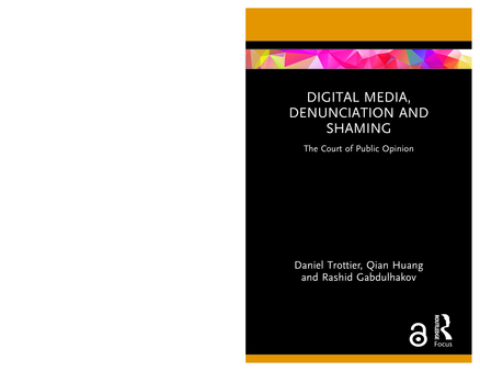 "This book offers a common set of concepts to help make sense of online shaming practices, accounting for instances of discrimination and injury that morally divide readers and at times risk unjust and disproportionate harm to those under scrutiny. Digital media denunciation has become a primary form of expression and entertainment across media environments, with new socially desirable forms of accountability under movements such as #MeToo and #BlackLivesMatter addressing longstanding forms of systematic and interpersonal abuse. Building on recent scholarship on shaming, surveillance and denunciation in fixed contexts, this study generates a cross-contextual and multi-actor account of practices like ‘cancel culture’, ‘doxing’ and ‘status degradation ceremonies’. It addresses instances of moral ambivalence by discussing how digital shaming becomes normalised and embedded across socio-cultural and institutional settings. The authors establish key actors and practices in online denunciations of individuals in a range of cases and contexts, including responses to COVID-19, political polarisation, and social justice movements, as well as more local and quotidian circumstances. They draw from empirical data including interviews with nearly 100 individuals targeted by mediated shaming and/or involved in these practices, as well as ethnographic observations of digital vigilantism and discourse analysis of press coverage and online comments relating to online shaming. Diverse applications and contexts, including China, the UK, Russia, and Central Asia, are considered, advancing an ambivalent understanding of media and denunciation that reconciles progressive and regressive practices, as well as celebratory and critical accounts of these practices." (Publisher description)
