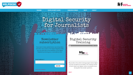 "helpdesk.rsf.org is a resource for journalists who want to inform and train themselves about digital security. Media production today can be threatened online in various ways, such as surveillance of communication, blocking of content, or defamation of journalists over social media. Reporters Without Borders supports journalists all over the world in their fight for freedom of expression, both through our work on the ground as well as with this website. We provide guides for digital security concepts, give recommendations about tools and their uses, offer an interactive formula to practice individualized threat modeling, and conduct regular online webinars about digital security. Although we try to be as clear as possible and to update the website constantly, we have to indicate that the use of certain tools is always at the own risk of the individual. If want to reach out to us, please reach out to us via E-Mail." (About the project)