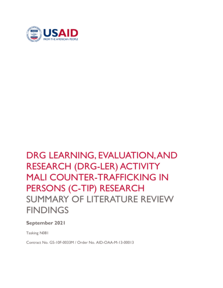 DRG Learning, Evaluation, and Research (DRG-LER) Activity Mali Counter-Trafficking in Persons (C-TIP) Research: Summary of Literature Review Findings