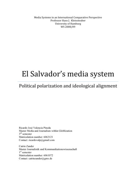 Hamburg: University of Hamburg, Media Systems in an International Comparative Perspective (2009), 25 pp.