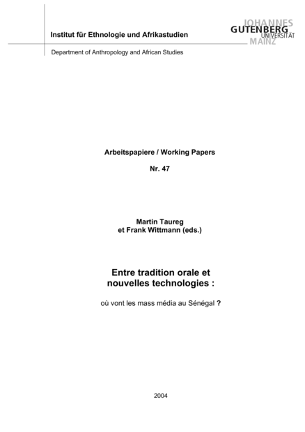 Les mass média sénégalais en pleine ébullition: une introduction / Martin Taureg et Frank Wittmann, 11