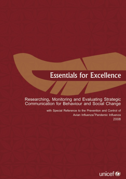 "Essentials for Excellence is not comprehensive but it does equip you with sufficient know-how to be able to plan and manage useful RM&E for your AI/PI strategic communication. For those seeking further information, web-links and key references are included. The guide is aimed at users who want straightforward answers to often quite complex questions (including sampling, research design and pre-testing) who need handy tips, and who are looking for practical rather than academic advice. To be of any use, the guide is highly dependent upon your ability and willingness to adapt the suggestions offered to suit your circumstances and needs. This is also a useful basic reference for researching, monitoring and evaluating other Strategic Communication initiatives whether you are conducting an initial assessment for a child protection communication programme or a final evaluation of a hygiene promotion project." (Foreword)