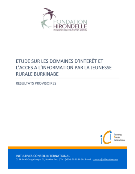 "Cette étude menée dans 5 régions différentes du Burkina-Faso a permis de relever quelques caractéristiques générales des modalités d’informations de la jeunesse rurale et de dégager des grandes thématiques d’intérêt liées aux réalités vécues localement. Il faut néanmoins relever que l’enquête aurait pu révéler des résultats bien différents si elle avait concerné l’ensemble des régions du Burkina. Nous aurions vu apparaître bien d’autres spécificités locales et peut-être quelques thèmes d’intérêt nouveaux. C’est pourquoi, au-delà des résultats spécifiques à chaque région, l’une des conclusions majeures de ce travail est l’impérieuse nécessité de prendre en considération les spécificités locales des différentes régions. Ceci non seulement afin de retenir l’attention de ces jeunes ruraux mais aussi afin de ne pas les amener à fuir l’écoute de la radio. Ces spécificités concernent: - D’une part les activités économiques locales (importance donnée à l’agriculture ou à l’élevage, présence d’activités d’orpaillage, proximité avec des grands pôles économiques comme Ouagadougou ou proximité avec des pays à fort dynamisme économique comme la Côte d’Ivoire ou le Ghana, etc.), Et d’autre part la situation sécuritaire. En ce sens, les informations transmises et le mode de communication ne peut pas être totalement uniforme. Enfin, à travers les réponses à nos questions et à travers les analyses ressorties ci-dessus, il est très clairement apparu que les jeunes sont en attente de médias plus proches d’eux, de leurs préoccupations et de leur réalité. Ils ont partagé leur souhait de participer à des émissions de radio et même de recevoir, dans leurs villages, les studios de production pour réaliser de temps en temps des émissions de radio directement chez eux. Se faire entendre et entendre d’autres jeunes qui leur ressemblent est un vœu partagé par les jeunes que nous avons rencontré au cours de cette enquête." (Conclusions, page 41)